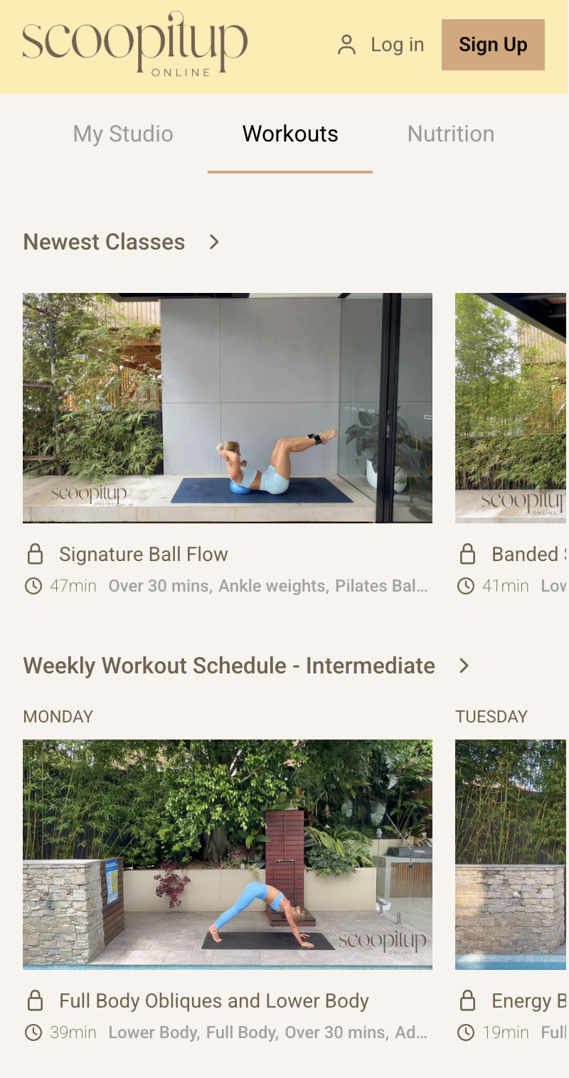 Scoop It Up online is your ultimate wellness hub. Enjoy a range of dynamic pilates classes with new flows weekly, exclusive recipes, nutrition approved meal plans, curated schedules, challenges + more!